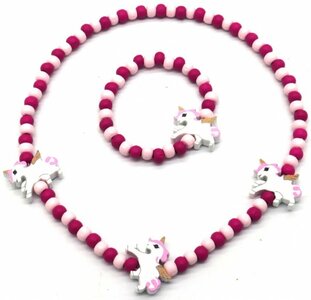 PARTIJ HOUTEN ARMBAND EN KETTING EENHOORN